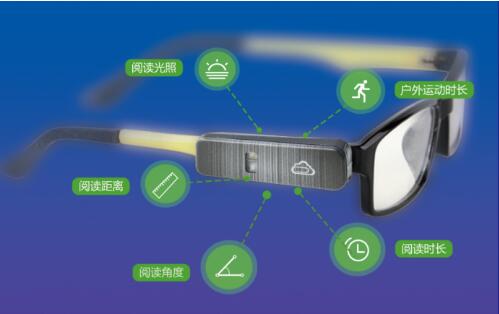 当佩戴者视物时间过长、视距过短、视光过强或过弱时,“云夹”就会启动震动模式提醒佩戴者,调整用眼行为或周围环境。“云夹”所采集数据通过蓝牙传输到云夹APP,经大数据技术及医学专家对数据进行分析和研究,可向每位用户提供定制化的用眼报告和护眼建议,最终为医生与家长提供青少年儿童科学用眼习惯建议。