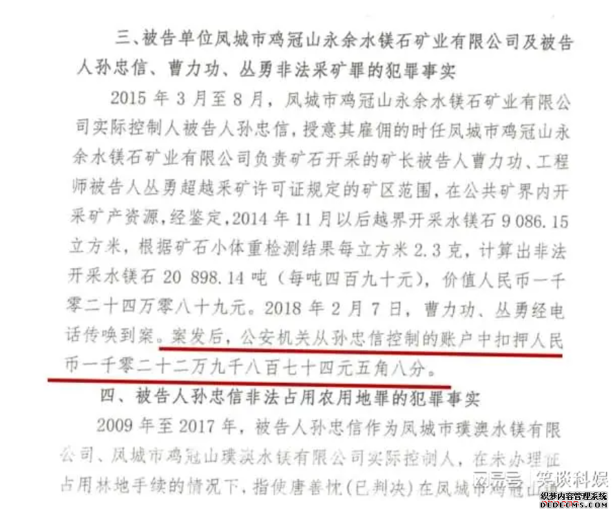 “指控的罪名全都是发生在十年前。如果我们真的有罪,难道不能一次性审完、判完,而非要等出狱之后再查一个新罪名?”辽宁丹东商人孙忠信的妻子李铁敏说,10年前,他丈夫在一座水镁石矿采矿权的争夺中失利,夫妇遭遇打击,先后多次判刑。 有关专家认为,孙忠信案是中国企业家刑事风险高企的一个缩影,很多民事纠纷,转眼就可能形成刑事风险。然而打铁还要自身硬,经营合规是企业的核心竞争力与生存底线。 9年被追究多罪名 2017年以来,孙忠信及妻子李铁敏先后被司法机关指控或追究了多个罪名。 孙忠信生于60年代,早年在丹东做生意。2006年,他在丹东凤城市买下一座水镁矿。2015年,这座水镁矿山探出30万吨储量,远景储量更是高达200万吨。但随之而来的,就是矿权纷争和牢狱之灾。 2017年12月,孙忠信第一次被抓。2019年8月,丹东市元宝区法院对孙忠信判决三个罪名,分别是:非法采矿罪,判处有期徒刑四年,并处罚金人民币五十万元;非法处置查封的财产罪,判处有期徒刑二年;非法占用农用地罪,判处有期徒刑一年,并处罚金人民币二十万元,决定执行有期徒刑六年,并处罚金人民币七十万元。上诉后,丹东中院维持原判。 2024年12月,孙忠信刑罚执行完毕、释放出监,但办案机关于2025年4月17日再次以孙忠信涉 嫌非法处置查封财产罪、盗采犯罪、虚假诉讼犯罪抓捕,因检察院未予批捕,于2025年5月23日释放。 李铁敏是孙忠信之妻。2019年8月,李铁敏和孙忠信同时被判刑,她的罪名为非法处置查封的财产罪,判处有期徒刑一年六个月,她2017年12月开始羁押,宣判之时,刑期已满。 2019年6月,李铁敏刑期满了却未能释放,涉 嫌新罪名为伪证罪。2021年11月,丹东市元宝区法院判决,判决:被告人李铁敏犯伪证罪,判处有期徒刑六个月。李铁敏随后上诉。 李铁敏的刑期应于2025年5月4日执行完毕、释放出监,让人意想不到的是,有关部门又以她犯有逃税罪,对其继续羁押。后因证据不足,检察院没有批捕,最终李铁敏于2025年6月9日被释放。 缘起采矿权争夺 李铁敏称,夫妻俩还有很多企业员工都被判刑,根源在于十年前的水镁矿采矿权争夺失败。站在对面的“大人物”,是凤城市原重要市领导高某,后因贪腐、充当黑社会保护伞落马。 2006年,孙忠信以2000万元的代价,从凤城市鸡冠山镇大阳沟村李某刚(现任村支书)购买了一个水镁矿经营权。随后,采矿权转让协议经过了村委会议定和公证处公证。 几年后,孙忠信新成立了一家公司凤城市璞澳水镁有限公司进行运作,采矿活动走上专业化、规范化道路。2014年采矿许可证到期后,丹东市国土资源局为璞澳公司办理续期,经营期间至2018年。 2015年,璞澳对矿山再次进行探矿,探明储量30万吨,远景储量则高达200万吨,一跃成为整个凤城市最大的水镁石矿山,价值过十亿。消息传开后,引起众多人的觊觎。 2016年7月的一天,凤城某重要领导高某突然给孙忠信打电话说:“给你2个亿,你下山退出经营,让宋老六(宋琦)干,这个矿你干不了!”孙忠信此前跟高某也有一定的私交,他说:这个矿山已经投资2个亿了,属于初期阶段,就委婉的回绝了。 此后,在高某的亲自安排下,多部门组成庞大的专案组,对孙忠信投资的企业进行全方位、刨根问底的查处。孙忠信夫妇的厄运自此开始,企业也自2016年10月起被迫停产。 扣押案外财产 高某在2018年落马后,孙忠信夫妇的命运却没有得到逆转。据当事人称,2017年12月,办案机关将孙忠信及亲友、主要职工所有的钱款全部搜光,冻结李铁敏的个人账号银行存款10,229,874.58元(注:其中600万元为北京一企业存入,余款是从另外一人处借款存入)。还将孙忠信三个企业的财务账册、多部电脑及其个人资料、多部高档手机予以全部搬走。