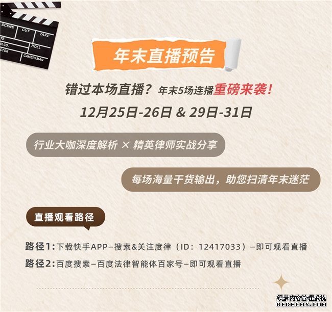 技术既是困境的加速器,也是破局的核心工具。多位律师的经验表明,当AI的浪潮奔涌而来,律师的应对策略不是对抗,而是“协同共生”。百度法律智能体正帮助律师从“脑力劳动者”中的“手工匠人”,转变为驾驭“AI外脑”的策略架构师与关系管理者,实现从“工具借用”到“智能共生”的华丽转身。在不久的将来,随着更多律师实战数据的沉淀与模型优化,百度法律智能体将全面实现从“辅助工具”到“专业协同伙伴”的进化,与律师共同构建“人机分工、优势互补”的新型执业模式,助力开启法律服务行业的新篇章。 这场关于行业未来的探讨,只是百度法律智能体赋能旅程的起点。12月25日至12月31日,百度法律智能体将连续推出五场重磅直播,为法律从业者带来一场覆盖行业趋势、实战技巧与AI落地的“跨年盛宴”。从行业现状深度解析到人机协同范式揭秘,每一场直播都将为法律从业者的行业痛点提供精准解法。关注直播,与万千法律人共同见证AI如何重塑执业未来,在变革浪潮中抢占先机!