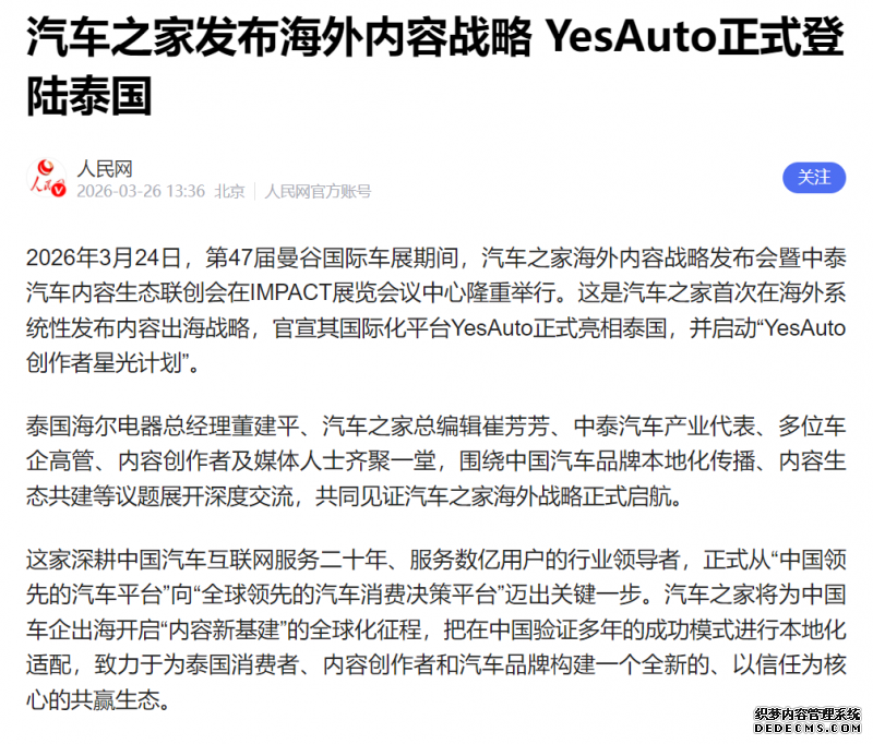 这真是大格局:你朝我扔泥巴,我教你种荷花! 汽车之家忙啥呢?出海正当时! 那么,汽车之家这段时间到底在忙什么?出海! 3月24日,第47届曼谷国际车展期间,汽车之家正式发布了海外内容战略,其国际化平台YesAuto登陆泰国,并启动“创作者星光计划”。这条消息人民网官方重磅报道。